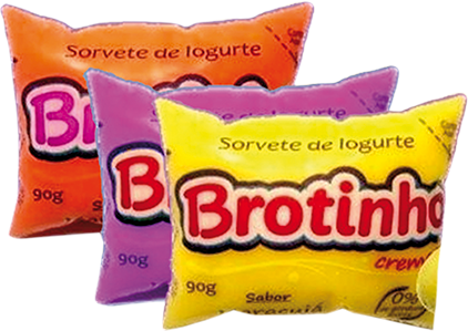 A linha Brotinho apresenta o clássico sorvete de iogurte em saquinho, sucesso há gerações. Disponível em sabores refrescantes como Coco, Morango, Maracujá e outros, combina cremosidade do sorvete com frescor do iogurte. Com embalagens coloridas, são ideais para pontos comerciais, escolas ou uso doméstico, oferecendo praticidade, sabor e preço acessível.